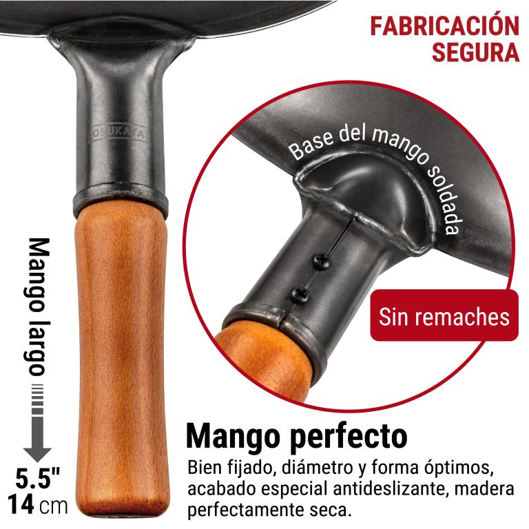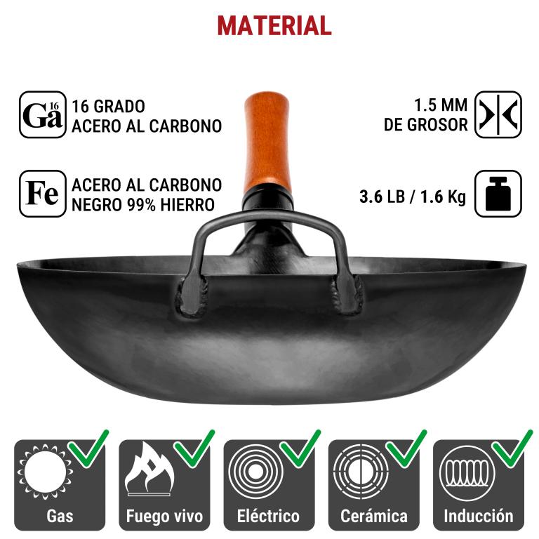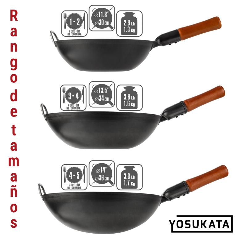 SABOR AUTÉNTICO: Descubre los ricos y auténticos sabores de la cocina china y otras cocinas asiáticas en tu propia casa. El woks sartenes de acero al carbono Yosukata de 34 cm con fondo plano está especialmente diseñado para que el jugo y el sabor queden retenidos en el interior de los ingredientes. Nuestro wok está perfectamente diseñado para usarlo como wok de camping, wok de barbacoa, wok de parrilla PRE-SAZONADO: Nuestro wok tradicional inducción se sazona de antemano a altas temperaturas de más de 600ºF/315ºC mediante técnicas especiales, a diferencia de sartén para wok y sartenes para saltear sin sazonar. Sigue siendo necesario sazonarlo completamente con aceite como cualquier wok profesional chino. MATERIALES DE ALTA CALIDAD: Este presazonado wok está fabricado con acero al carbono negro de alta resistencia. El diseño ergonómico del mango de madera asegura un agarre cómodo cuando utilizas esta sartén acero al carbono sin antiadherente Menos suciedad, más versatilidad: La tapa de madera para wok YOSUKATA mantiene temperaturas de cocción uniformes dentro de tu wok para que puedas hervir, cocer al vapor o estofar, o saltear en tu wok. Nuestra tapa de madera te protegerá a ti y a tus superficies de trabajo de salpicaduras y suciedad Asa exclusiva y práctica: Hemos diseñado un asa larga y práctica, para que puedas levantar fácilmente la tapa de madera para cocinar cuando quieras echar un vistazo a tu obra maestra.