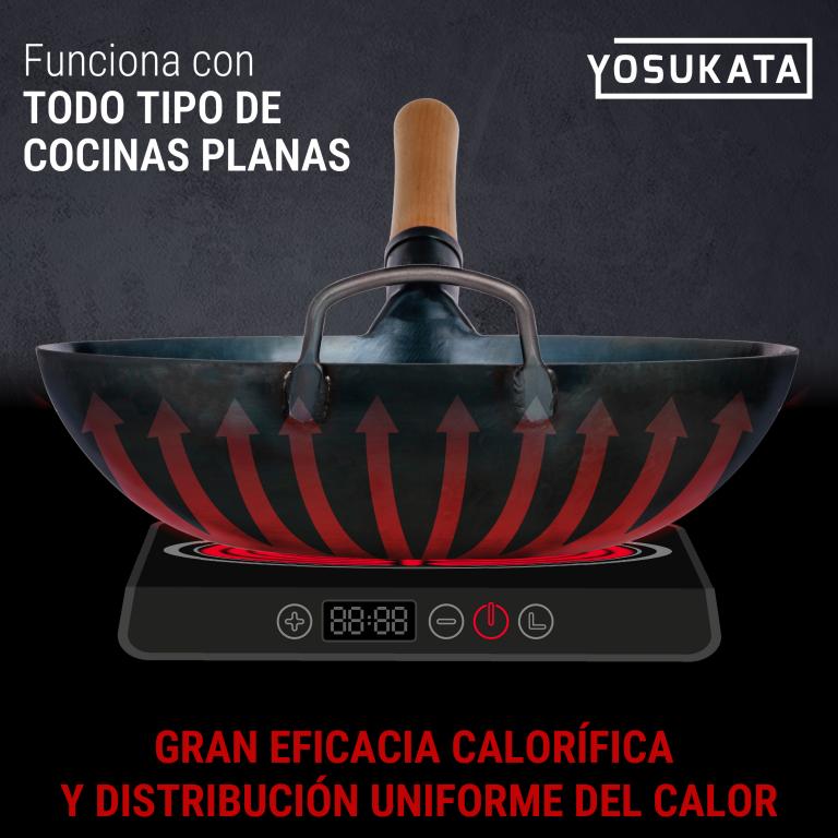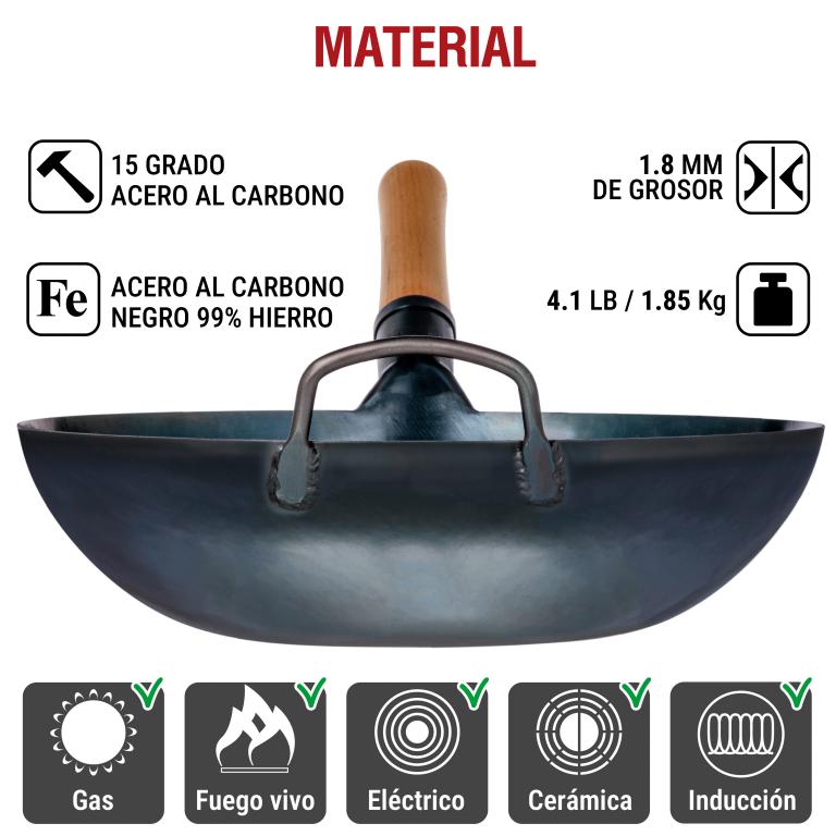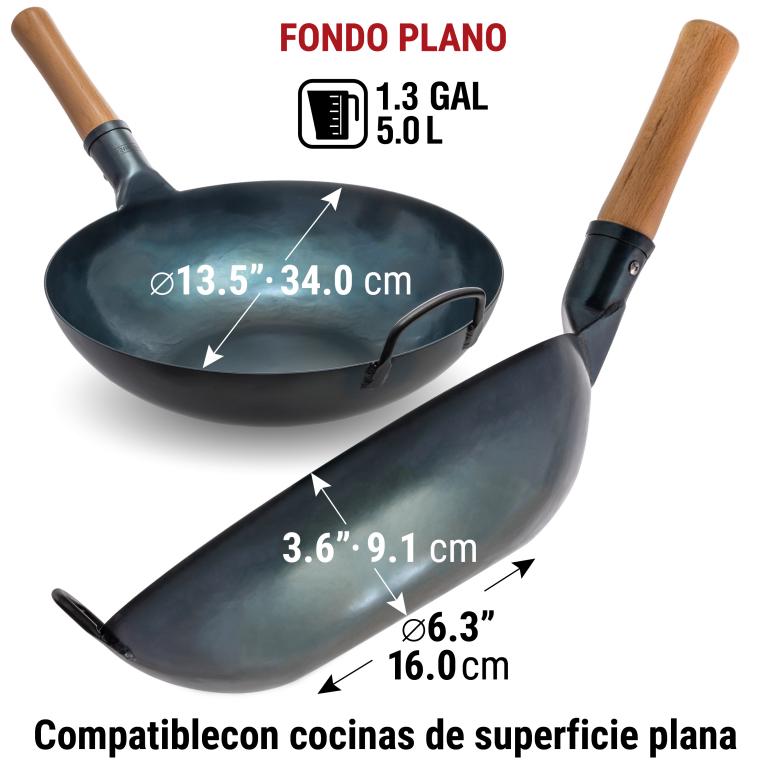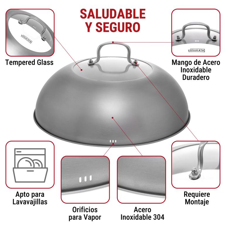 PRE-SAZONADO: Los woks sartenes de acero al carbono YOSUKATA de 34 cm con fondo plano están pre-sazonados a altas temperaturas superiores a 315C utilizando técnicas especiales. Sólo se necesitan unos minutos para sazonar por completo esta sartén tradicional japonesa con aceite y empezar a cocinar de inmediato CALIDAD DE PRIMERA PARA USO DE POR VIDA: Este wok traditional de acero al carbon martilleado a mano como wok induccion es extra resistente. Cada wok profesional está fabricado con acero al carbono de alta calidad utilizando la tecnología de fabricación tradicional. MULTIUSOS: Es el best wok Chino de 34 cm para cocinar platos deliciosos y saludables, ya que retiene el jugo y el sabor de los ingredientes. Perfecto para freír en sartén, estofar y sofreír. Maximiza la funcionalidad de tu wok: Nuestra tapa de acero inoxidable para wok de 32,5 cm atrapa y reparte el calor uniformemente para una cocción más eficaz. Estas tapas para wok concentran todos los sabores, para que tu comida tenga mejor sabor. Resistente y apta para el lavavajillas: Nuestra tapa resistente para wok de 34 cm está hecha de acero inoxidable de gran resistencia. Esta tapa de acero para wok no posee un revestimiento artificial que pueda filtrarse en tu comida.